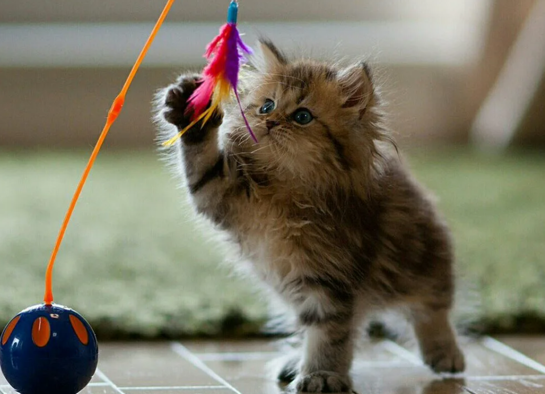 Котенок играет с игрушкой