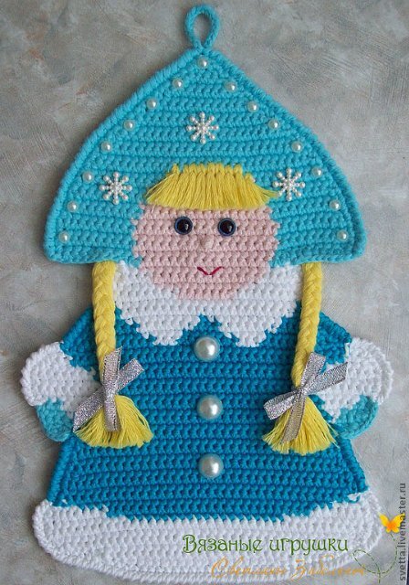 Новогодняя вязаная прихватка крючком Снегурочка со схемой и описанием
