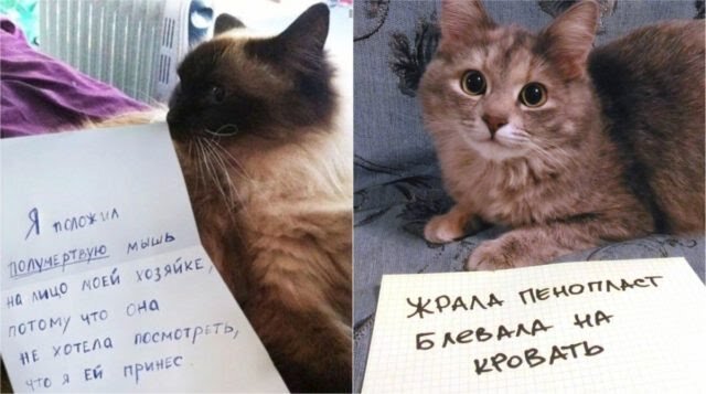 Коты часто неподобающе себя ведут и остаются безнаказанными. Им все сходит с лап. Пользуясь добротой своих хозяев, они как прежде спят у них на коленях и едят любимый корм. Но не все люди готовы прощать пушистых негодяев. Некоторые из них решили их пристыдить на весь интернет. 1.Когда у кота недостаток полиэтилена в организме Разве можно его за это винить? 2. Провалы в памяти бывают у каждого Что тут скажешь…? 3. Вода должна быть всегда, несмотря ни на что А если ее нет, это нужно срочно исправить. 4. Защита от детей не спасает от котов Перед вами сидит живое этому доказательство. 5. Пенопласт “не зашел” Может, его нужно было запивать? 6. Коту тоже хочется роз Но ему их не дарят. 7. Суровый кот С таким опасно иметь дело. 8. Он не единственный такой Все коты это делают. 9. Понять и простить До следующего раза.) 10. Ест все, что не успели спрятать А что спрятали, находит и ест. Правда забавно? Поделитесь этой подборкой с друзьями в соцсетях, а так же оставайтесь на этом канале и следит