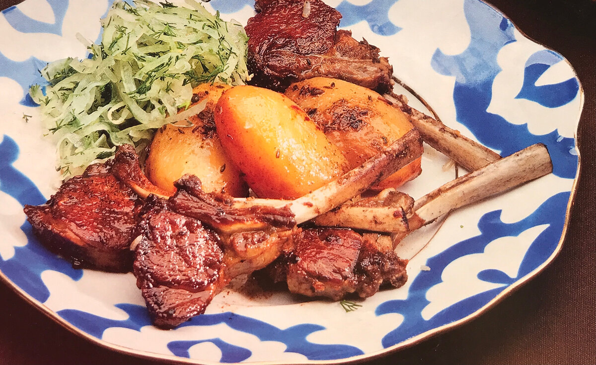 Название этого блюда можно перевести, как «жареное мясо в кастрюле». Но мы переводить не будем, ибо газан-кябаб звучит красивее:)) И вкуснее! Давайте готовить! Нам понадобятся 6 кусков бараньей корейки на косточке, 6 средних картофелин (количество мяса и картофеля определите сами, смотря на то, сколько у вас едоков), чайная ложка зиры (тут тоже по желанию: целые семена или молотые), 500 мл мясного бульона, растительное масло для жарки (в идеале это должен быть курдючный жир) и соль по вкусу. Если у вас нет казана, готовьте в кастрюле с толстым дном. Сначала разогрейте в кастрюле растительное масло. В горячее масло выложим кусочки корейки с косточкой и обжарим с обеих сторон до золотистого цвета. Переворачивать будем только один раз. Шумовкой вынем корейку на тарелку. Очищенный целый картофель положим в масло от жарки мяса и постоянно мешая, тоже обжарим до золотистого цвета. Вернем в кастрюлю корейку. Добавим зиру, соль и бульон. Накроем кастрюлю крышкой и на сильном огне доведем бул