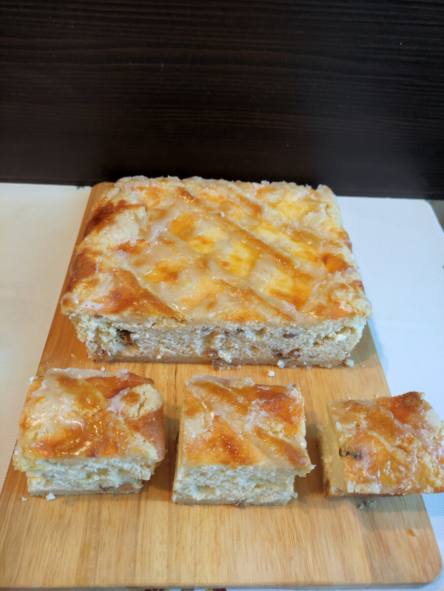 Здравствуйте читатели моего канала и добро пожаловать ко мне на кухню. По просьбе детей решил приготовить краковский сырник. Во всех рецептах, найденных в сети, используется очень много сахара. Поэтому предлагаю свою версию приготовления. Ингредиенты доступные, готовится просто, вкус отличный. Обратите внимание. Ингредиенты: Основа · Мука пшеничная – 150 г · Сахар – 50г · Масло сливочное – 50г · Яйцо куриное – 1 шт. · Цедра лимона – по вкусу. · Соль – 1/2 ч. л. Начинка · Творог – 500г · Адыгейский сыр – 300 г · Куриные яйца – 6 шт. · Крахмал картофельный – 2 ст. л. · Масло сливочное – 50 г · Изюм – 50г · Ванильный сахар – 8 г (1 пакетик) · Сахар – 50г. · Соль – 1/2 ч. л. Глазурь · Лимон – 1/2 · Сахарная пудра – 60г (1 пакетик) Как приготовить: Готовим основу. Для этого в миске смешиваем размягченное сливочное масло, сахар, вбиваем куриное яйцо, добавляем мелко нарезанную цедру лимона, щепотку соли, перемешиваем до однородного состояния. В полученную смесь насыпаем муку, замешиваем тес