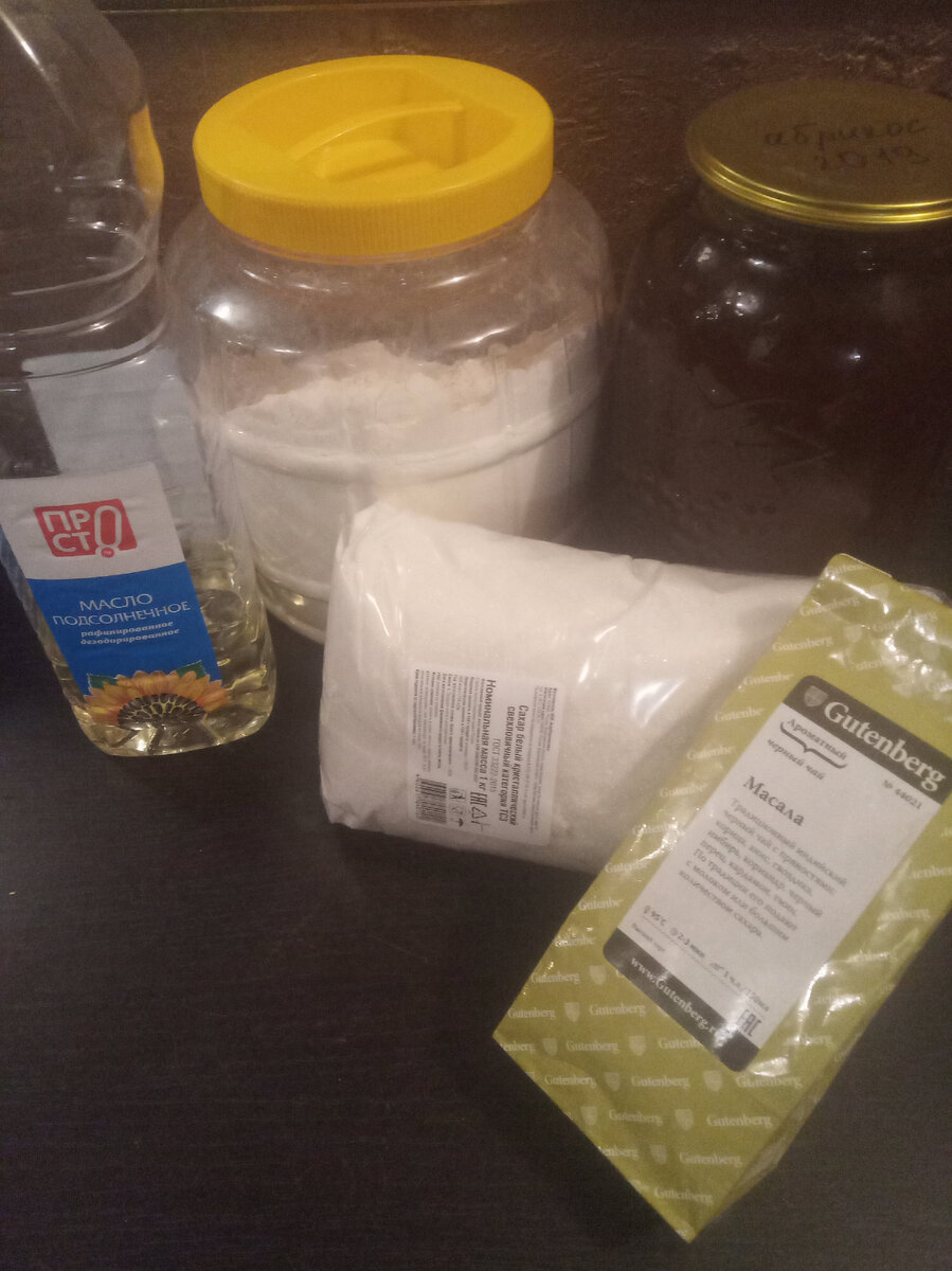 Доброго времени суток! Если жизнь дала трещину, а пить чай хочется все же с чем то сладким. На помощь приходит экономный рецепт под названием Чайная коврижка. Для приготовления этого пирога потребуются совсем простые ингредиенты. Себистоимость даже считать не буду, потому как она будет разниться от того, что вы добавите. Основой идет мука и сахар, дальше можно экспериментировать с тем, что найдется дома. Рецепт так как он должен быть: 2-2,5 стакана муки 1 стакан сахара 1 стакан чая 2-3 ст.л любого варенья 3 ст.л растительного масла 1 ч.л. специй 2 ст.л какао, изюма или ещё чего то по желанию 1 ч.л соды, которую гасим уксусом Я завариваю чай Масала, он сам по себе со специями. Именно такие можно добавить в чай и настоять, что бы они лучше раскрылись. Чай придает цвет, поэтому завариваем посильнее. Я в этот раз спешила и не дала чаю настояться, поэтому цвет светловат. Варенье у меня абрикосовое, но можно любое. Мне показалось в чае специй мало и я добавила из мельнички прямо в тесто. См