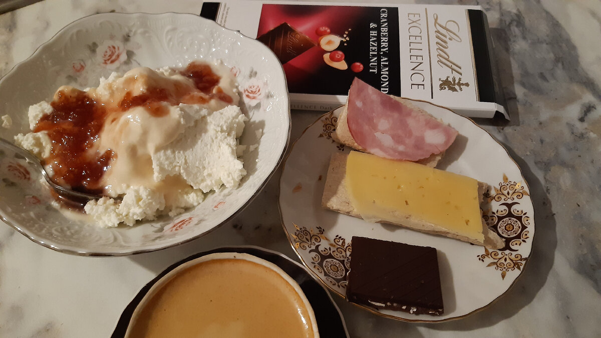 Всем добрый день, дорогие читатели! Под этим девизом я буду рассказывать о нашем #экономное меню в декабре. Расчет бюджета на питание на декабрь - все подробно с цифрами Запасы на начало месяца - все покупки были сделаны в октябре и ноябре, когда мы также питались на 150 руб в день на человека. #экономное меню #экономное питание #экономная еда достала вчера вечером бадью с творогом из морозилки. Ту, что мы закупали в Метро. Отличный творог! Утром с удовольствием им позавтракали. На сметане я решила сэкономить - не купила ее на этой неделе. Прекрасно заменили ее густым домашним йогуртом. И добавили еще малину на меду, меня угощала коллега, у нее своя малина и свой мед. Супер-натурпродукт! Хлеба вчера не испекла, доедали хлебцы. Бутерброды с ветчиной и сыром и квадратик шоколада на перекус на работе у меня было яблоко и домашний йогурт с голубикой (вкуснотища!). Йогурт делала из топленого молока, чудесный просто! на #обед - последняя порция чечевичного супа, много я его сварила. Доели.