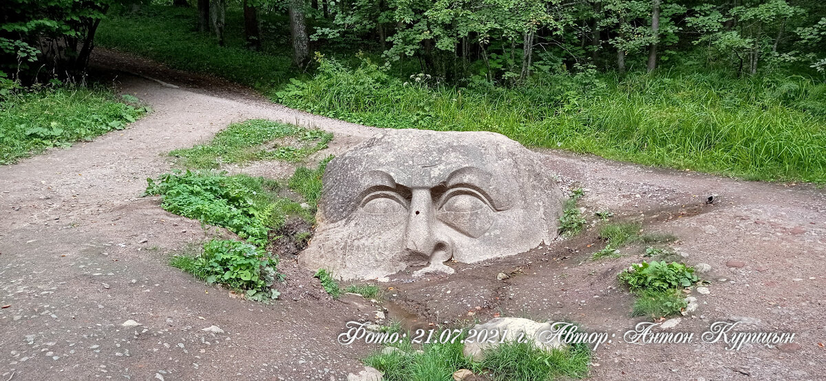 Приветствуют читателей и подписчиков моего канала. Продолжаю публикацию под названием «Что скрывает дворцово-парковый ансамбль «Сергиевка». Сегодня расскажу о самой интересной скульптуре, находящей на территории дворцово-парковый ансамбль «Сергиевка» - это скульптура неизвестного мастера «Каменная голова». Скульптура располагается на склоне оврага, её размеры составляют: 2х2,2х1,8 метров и она оформляет родник, стекающий в речку Кристательку.