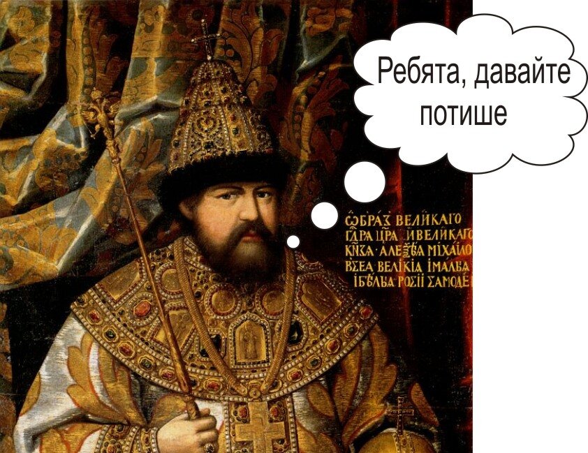В тихом омуте - черти водятся. (Народная мудрость) Всегда задавался вопросом, а что должны чувствовать люди знатные и богатые, когда кланяются "выкрикнутому" царю или его детям. Они же в курсе, что он такой же, а то и худороднее, но обстоятельства... Такой вопрос, свояк серебришко совковой лопатой загребает, а царь не видит? Верю, верю... Но царь к тому времени уже стрельцов))) вызвал. После отказа выполнить законные требования сотрудников царской безопасности, толпу загнали в реку. Убитые и утопленные исчислялись сотнями. Несколько тысяч арестованы и после следствия сосланы. Москвичей грамотных поголовно заставляли дать образец почерка, что бы выяснить кто челобитную писал! Вот тебе и тишайший. Но это пока цветочки, а вот и ягодка - Стенька Разин. И тоже во времена тишайшего. Подробностей восстания не вижу смысла вспоминать, достаточно помнить, что оно по размаху одно из двух самых крупных. И все это на фоне грандиозного религиозного раскола! Да, да, и это во времена Алексея М