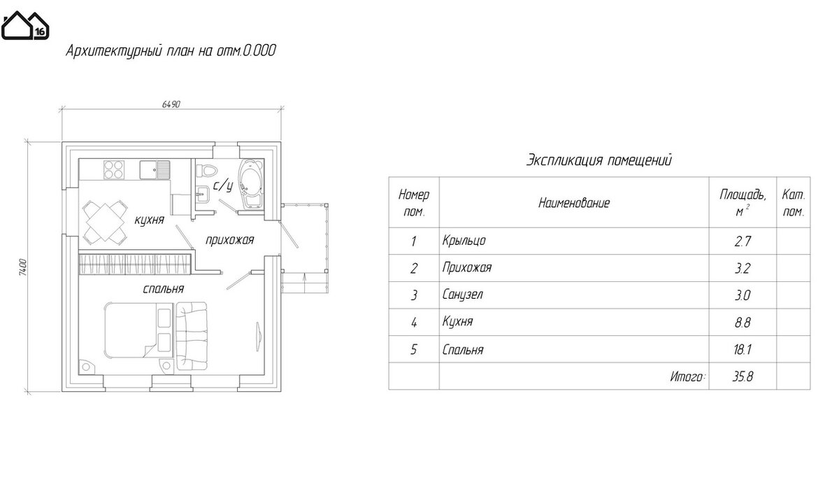 Доброго времени года! Это канал Проектной мастерской №16. Сегодня вашему вниманию три варианта планировок дачных домов со стенами из кирпича. Разница этих домов в общей площади и наличии выделенных спальных. Давайте посмотрим первый вариант. Здесь имеем выделенную кухню, но спальное место находится в общей комнате, которую можно условно поделить на зоны дневного и ночного пребывания. Далее рассмотрим дом с большей площадью. Здесь выделена одна спальня. Кухонный гарнитур расположен в общей комнате. В этом и есть основная разница с предыдущим вариантом, ну и плюсом идет небольшая веранда. Далее рассмотрим вариант уже с двумя спальными комнатами. Присоединяя прихожую к общей комнате получаем дополнительные квадратные метры, которые выделяем для второй спальни. Данные три варианта мы советуем рассмотреть не только как примерный план к действию, но и как процесс поиска и подбора наиболее подходящей планировки. Варианты кирпичных домов (коттеджей) можете посмотреть в Каталоге проектов и на