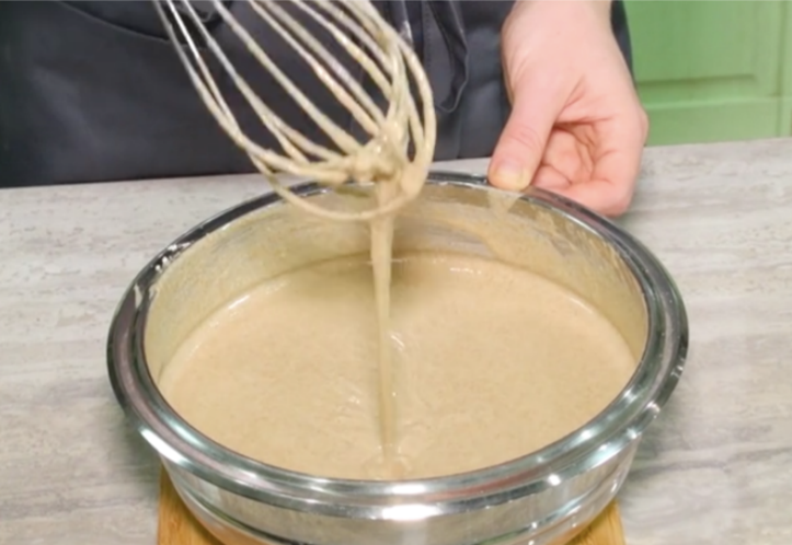 Важно! Все ингредиенты должны быть комнатной температуры! Также, эти коржи получаются супер-нежными – это вкусно, но работать с ними сложновато. Поэтому, рекомендую добавить к ингредиентам для теста 3 чайных ложки льняной муки (смолотого льняного семени) или псиллиума – они станут менее хрупкими (в видео этой информации нет)