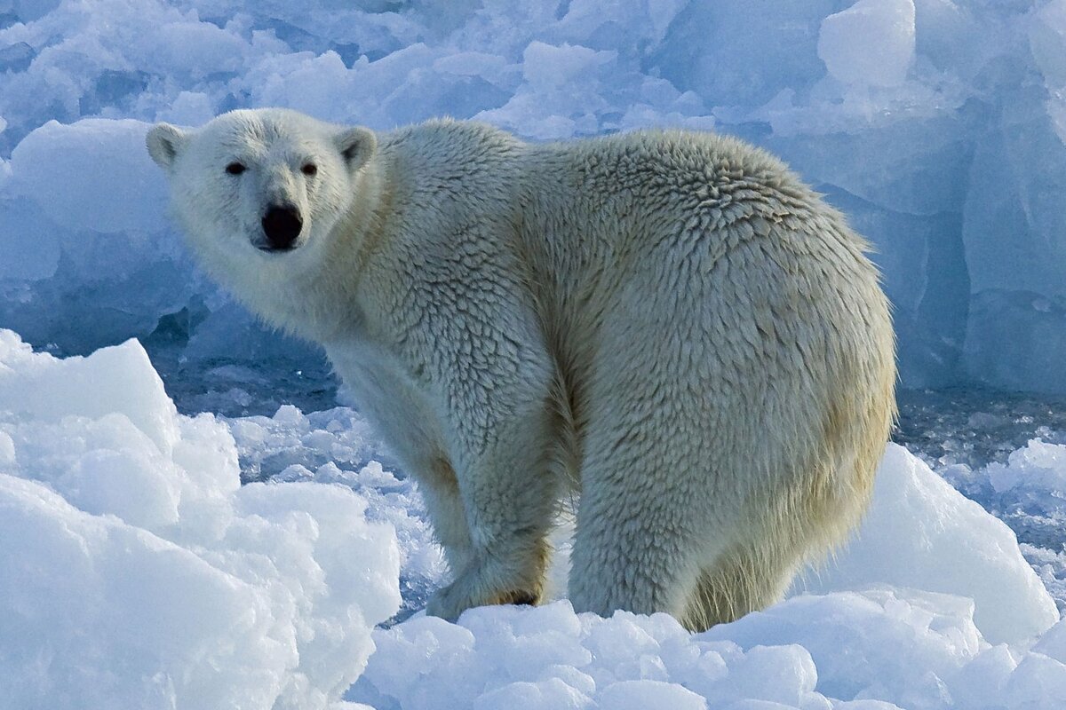 Из арктических животных для белого медведя может быть опасен старый морж, но только в воде.