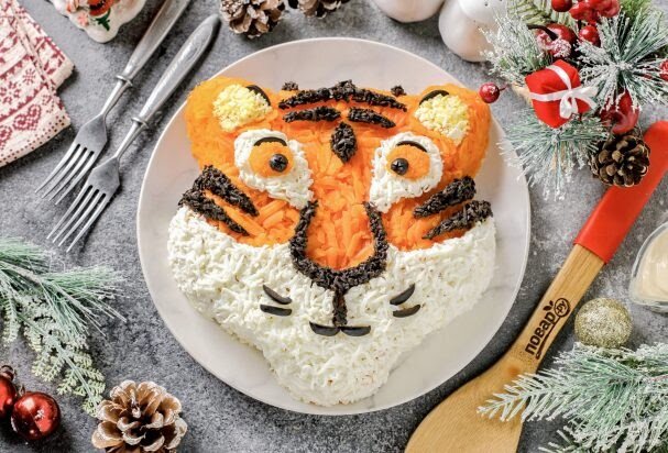 Символом наступающего 2022 года стал Голубой Водяной Тигр. Хотите узнать, какое меню задобрит привередливого хищника, а вам принесет удачу? VETLIVA делится проверенными рецептами самых вкусных новогодних блюд. На закуску яркий салатик Хоть тигр и большое животное, в первую очередь это кошка. А кошачьи, как известно, без ума от рыбы во всех ее проявлениях. Значит, рыбный салатик с креативным оформлением придется ему как нельзя по вкусу. Ингредиенты: Салат выкладывается в соответствующую тару слоями: Тонким слоем майонеза промазывается каждый слой салата. Если вам покажется, что соуса много, можете добавлять его через слой. Совет от VETLIVA: кстати, если вы тоже, как и символ наступающего года, без ума от рыбы и рыбалки, рекомендуем посетить белорусские агроусадьбы. Большинство из них расположено на берегах различных водоемов и предлагают заядлым рыбакам все необходимое для того, чтобы поймать трофей в любое время года. Основное блюдо: мясной пирог Не меньше, чем рыбу, тигр любит самые р