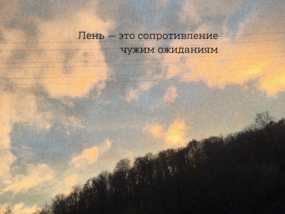 Когда я слышу слово «лень», в воздухе начинает пахнуть нафталином. «Ты ленишься», «Не ленись», «У тебя не получается, потому что ты ленивый». Будто кто-то очень авторитетный с багажом жизненного опыта и чувством важности читает нравоучения, от которых ты, в свою очередь, ощущаешь себя неповоротливым мешком говна. Что такое лень на самом деле. Лень — это банальное нежелание делать что-либо. Лень — это сопротивление процессу, который не кажется нашему организму лучшим решением. Без сопротивления лень не может существовать. В таком случае кто с кем борется? Ответ прост: моё представление о правильном сопротивляется чужому представлению о правильном. (Даже если борьба разворачивается только в моей голове). Почему они борются? Потому что я не могу взять ответственность за свои поступки и охотнее доверяю мнению со стороны, нежели самому себе. Рассмотрим три ситуации, в которых возникает лень. 1️⃣ Заставляешь себя делать, потому что вынужден. Ты точно знаешь, что заниматься этим тебе неинтер