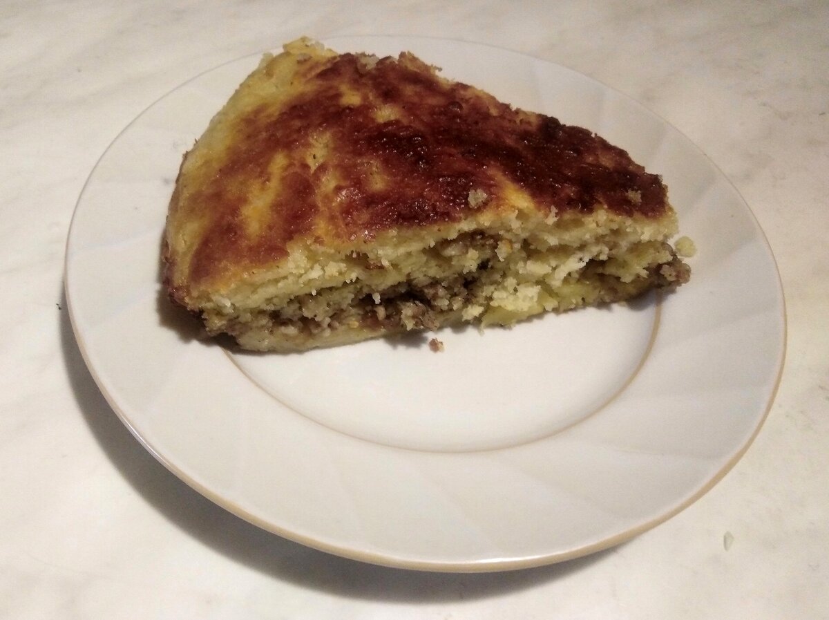 Но прошло время и как-то, когда я в очередной раз стряпал оладушки, мне неожиданно в голову пришла идея. Применить тесто для оладушек, для выпечки заливного пирога. Я пошукал Ютуб и оказалось что такие рецепты есть. Типа «Заливной пирог с мясом на кефире». Просмотрел несколько рецептов, скорректировал их немного и составил для себя простейший рецепт. И у меня всё получилось с первого раза! )) И получилось именно так как я хотел – ОЧЕНЬ ПРОСТО, ОЧЕНЬ БЫСТРО И ДЁШЕВО. Я уверен, что более простого рецепта пирога не существует. А про вкус я даже и говорить не буду )) Сытный, с нежным тестом, пропитанный мясным соком… Мммм… ))) Итак, хватит заниматься «болталогией» и теперь сам рецепт…