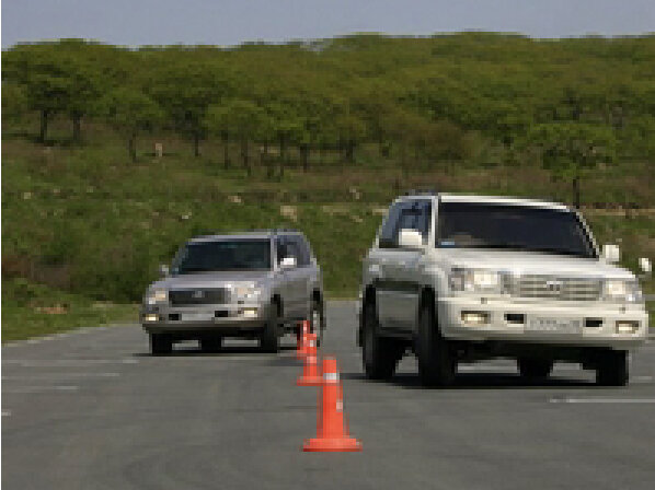 С Toyota Land Cruiser ситуация развивалась практически точно также, но все-таки дали о себе знать и габариты машин. Пересевший за правый руль Алексей совершенно спокойно прошел коридор, отметив потом, что через полчаса вождения праворульного автомобиля стал бы чувствовать себя за ним спокойно: «здесь главное немного практики». А вот с левым рулем возникли проблемы: если Андрей на Impreza только прижимался к правому краю коридора, то его тезка – водитель праворукого внедорожника, сев за леворульный Land Cruiser, просто сбил правый ряд конусов. Выйдя из машины, он сказал, что сделал это не нарочно... просто не смог сразу почувствовать «новый» для него автомобиль.