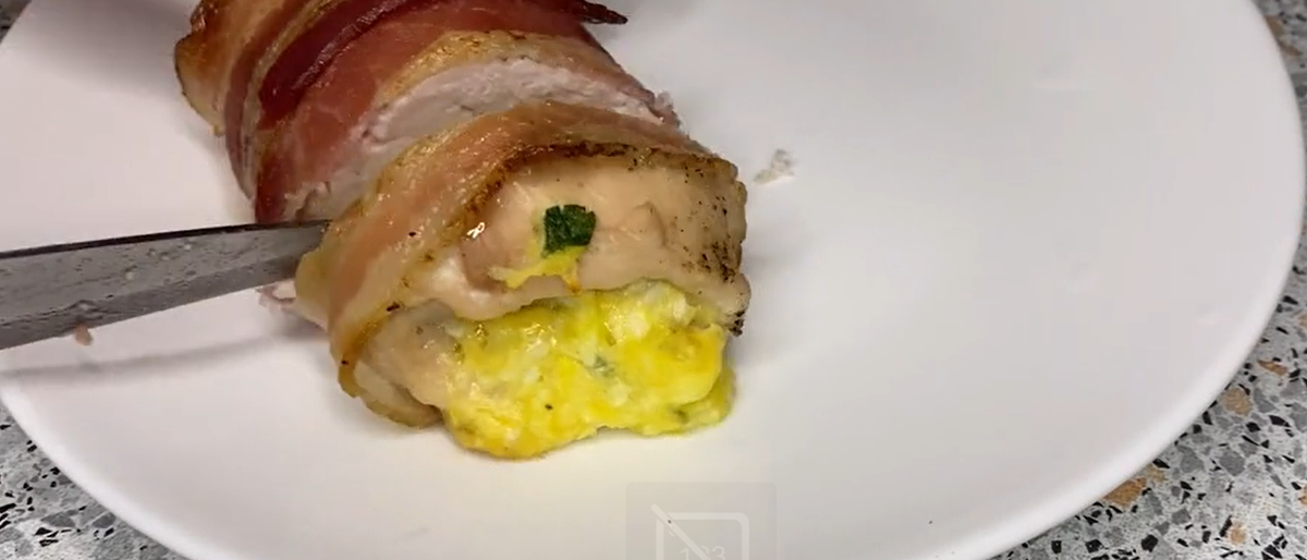 Здравствуй, дорогой читатель! Хочу поделиться с тобой рецептом, который покорит желудки твоих домочадцев и гостей! Нам понадобиться: Начинаем готовить! 1. Сначала готовим начинку. Для этого нужно натереть сыр, 2 яйца. Добавить к ним петрушку, майонез и чеснок. Тщательно перемешать. 2. Затем готовим мясо. Солим, перчим филе. Выкладываем на них начинку. Сворачиваем в рулетик. 3. Затем наши рулетики обворачиваем в бекон. 4. Отправляем на 40-50 минут в духовку, на 180 градусов. Если готовить при 150 градусах, но примерно час, то блюдо получится еще сочнее. Готово! На видео видно, что курица получилась сочной. Кстати, очень сытная! Мне хватило (и достался) только один рулет. Вкусно! Пробуйте! делитесь вашим мнением! #рецепты #рецепты на новый год #кулинария рецепт кухня #кухня для всех
