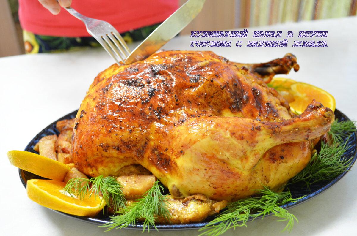 Привет дорогие друзья Сегодня готовим вкусную, ароматную курицу в духовке Сочная и вкусная курица готовится легко и просто Курицу обмазываем маринадом, начиняем айвой и в духовку На большую курицу 3 кг я брала айву в очищеном виде 600-700 гр сок 2 крупных мандаринов Мандарины сначала обдаю кипятком, потом мою и только потом выжимаю сок соль 2 ст.л. я брала адыгейскую, хотя можно взять обычную+любимые специи чеснок свежий 3 зубчика и чеснок гранулы 1 ч.л. куркума 1 ч.л. душистый молотый перец 0,5 ч.л. растительное масло 30 мл Соединим все для маринада, обмазываем курицу начиняем айвой, которую нарезаем кубиком Можно зашить нитками или зубочистками серединку курицы с айвой Затягиваем фольгой форму.Отправляем в духовку, при т-ре 180-200 гр на 2 часа. Но время приготовления всегда смотрите по весу курицы. Далее убираем фольгу и запекаем еще в духовке до румяной корочки. Я запекала при конвекции минут 15. Курочка получается сочная, ароматная и мягкая. Приготовьте и вы дорогие мои буду рада