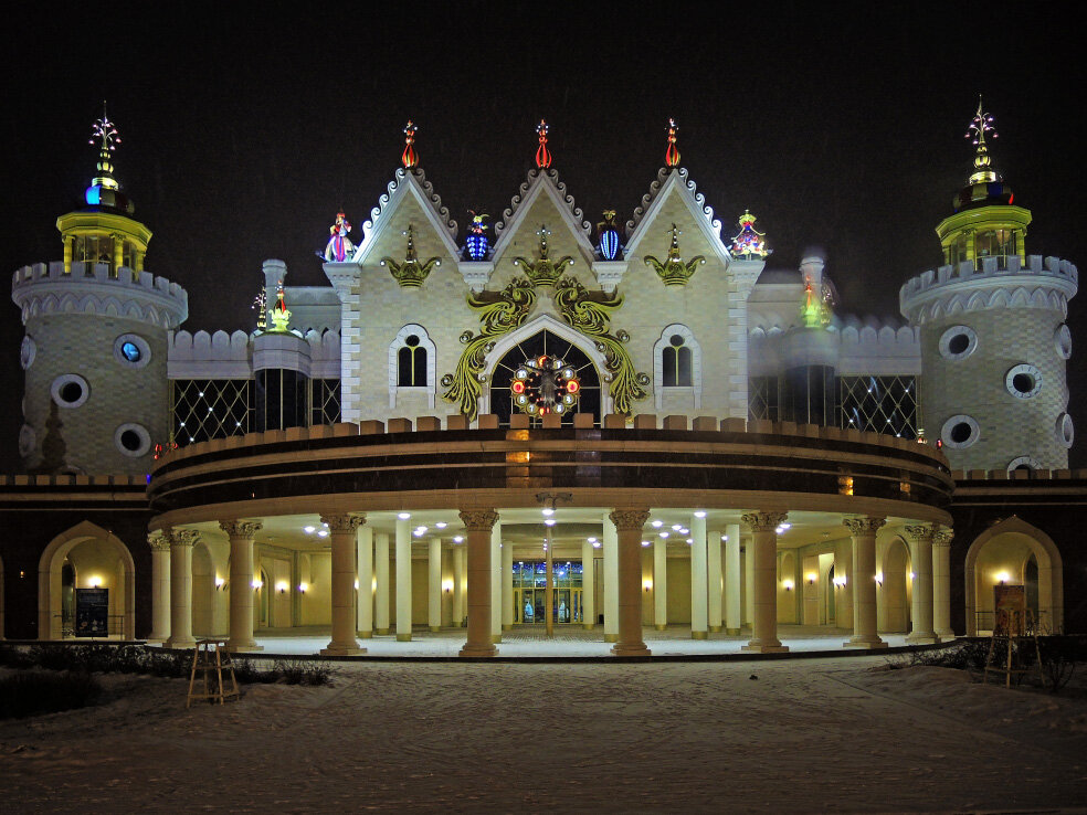 Продолжаю рассказ о короткой прогулке по новогодней Казани в конце декабря 2015 года. Ссылку на предыдущие части можно найти в конце статьи. В этой части покажу совсем быструю прогулку по центральным улицам города. Пробежался здесь скоренько по нескольким причинам. Во-первых, начался сильный снегопад. Во-вторых, по пути не было ничего особо интересного. А в-третьих, торопился к началу мероприятия, о котором расскажу в следующий раз. Эта часть начинается около театра кукол «Экият». На площади перед ним обустраивали праздничный городок с ледовыми элементами. Но работы были в самом начале. Поэтому посмотрели только здание самого театра. Улица Петербургская. Храм Сошествия Святого Духа. Сквер на пересечении улиц Петербургской и Артёма Айдинова. Одна из достопримечательностей здесь - Ротонда, стилизованная под купол Казанского собора в Санкт-Петербурге. По бокам от неё летом работают два фонтана. Праздничная ёлка от одной организации. С участка Петербургской около ТЦ «Кольцо» и далее с ул