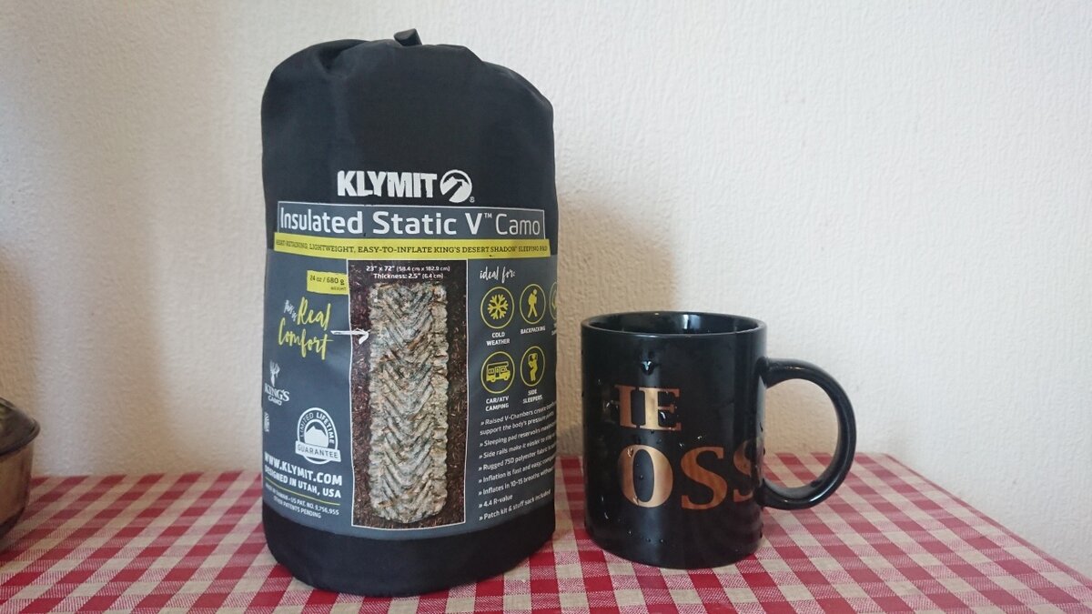 За время вынужденного безлошадья решил обновить и вцелом привести в порядок походный инвентарь. Начал со спального места. Приобрел надувной коврик KLYMIT Insulated Static V в расцветке Camo. Коэффициент R-value (показывает максимальное охлаждение поверхности, при котором на этом коврике не замёрзнешь) у этого коврика 4,4 что в градусах соответствует - 15 C. То есть осенью или весной в палатке будет вполне комфортно. Ну, а летом, само собой. Что могу сказать - для меня это реально открытие. При столь миниатюрных размерах в сложенном виде(фотка с кружкой для масштаба) и около 6 см. толщины в надутом, он дает ощущение полноценной кровати, лежа пола не касаешься ни на спине, ни на боку. При этом просто рукой или пятой точкой при сидении на нем-коврик легко продавливается.