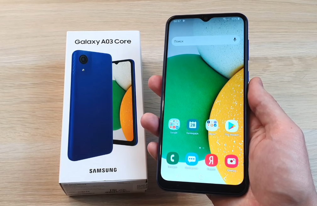 Всем привет друзья и добро пожаловать на канал "IT фобия" На канале я рассказываю о новинках в электроникой, а также о товарах которые себя отлично зарекомендовали и получили большое количество положительных отзывов покупателей. Подписывайтесь на канал здесь много интересного! Общий вид: Новый дешевый смартфон Galaxy A03 Core от компании Samsung может порадовать людей с ограниченным бюджетом. Смартфон отлично подойдёт для тех кому устройство нужно для непосредственно звонков, а также важен автономный режим работы. В продажу смартфон поступил в двух цветах: чёрный и тёмно-синий. Корпус смартфона имеет рифленую текстуру, что тем самым препятствует высказыванию смартфона из рук и препятствует образованию отпечатков пальцев на корпусе смартфона. Что в коробке: Комплектация смартфонов от компании Samsung, мало когда радовало. В коробке помимо смартфона находится зарядка и провод. Камеры смартфона: Поскольку это бюджетный смартфон оснащённость камерами у него весьма ограничена. Имеется всег