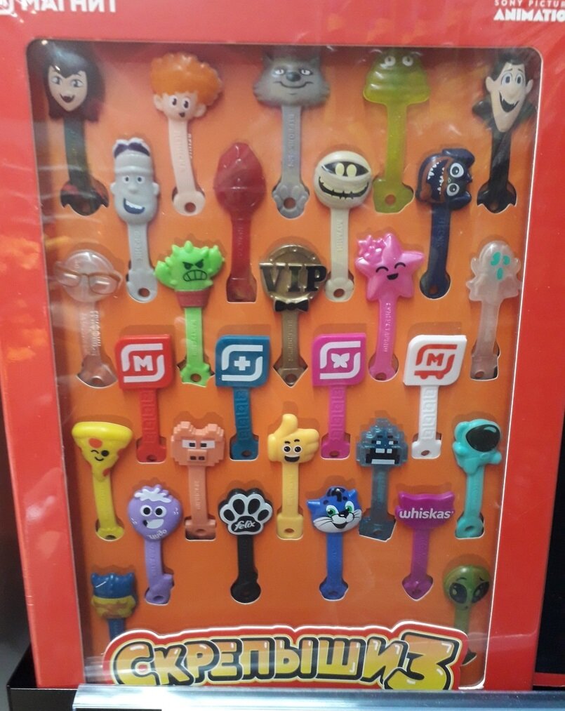 Здравствуйте, дорогие подписчики! Спасибо огромное, что подписались на мой канал! Сегодня я был в магазине "Магнит" и увидел стойку с товарами на тему "Скрепыши 3". 1. Набор "Скрепыши 3". В наборе вся коллекция скрепышей (3 часть). Цена: 699 рублей 99 копеек (жёлтый ценник). 2. Набор свечей для торта "Скрепыши 3". В упаковке 5 разных штук. Цена: 59 рублей 99 копеек (жёлтый ценник). 3. Набор двухцветных карандашей. В упаковке 12 штук. Цена: 69 рублей 99 копеек (жёлтый ценник). 4. Термомозайка. Интересная игрушка. Для детей от 5 лет. Цена: 199 рублей 99 копеек (жёлтый ценник). 5. Набор бумажных трубочек для напитков. Цвета в ассортименте (фото смотрите в галерее - 4 штуки). В упаковке 25 штук. Цена: 49 рублей 99 копеек (жёлтый ценник). 6. Контейнер для еды. В ассортименте. Цена: 99 рублей 99 копеек (жёлтый ценник). 7. Праздничные колпачки "Скрепыши 3". В упаковке 6 штук. Цена: 54 рубля 99 копеек (жёлтый ценник). 8. Шарики надувные "Скрепыши 3". В упаковке 5 шаров разного цвета.