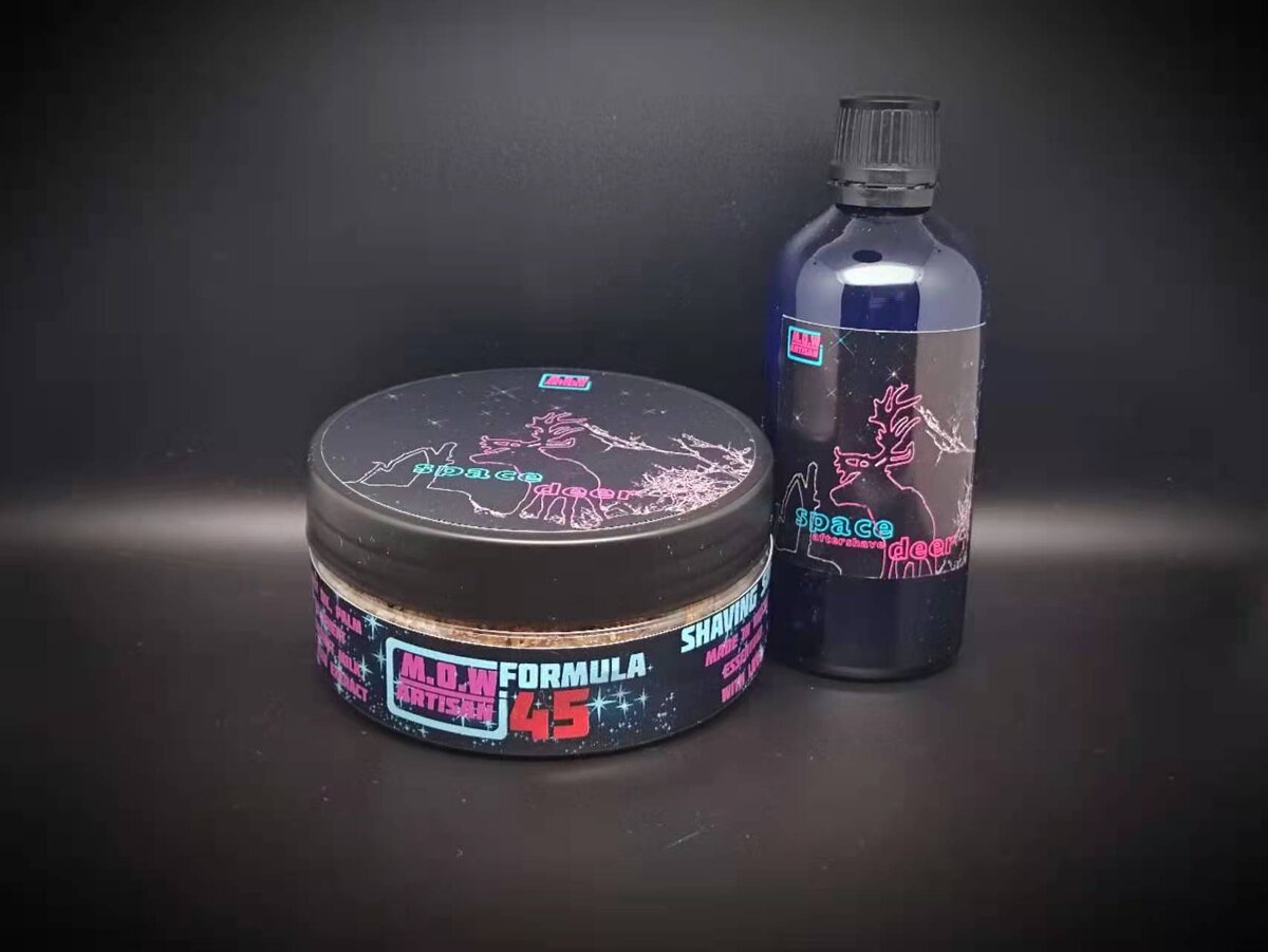 Многие уже знают нашего российского артизана M.O.W. (MadShad), который не так давно вышел на рынок с великолепной косметикой для бритья (мыло, лосьоны). По моему мнению конкурентов у него на российском и пост-российском пространстве просто нет, а те, что есть, просто рядом не стоят! Итак, сегодня на обзоре будет новая экстра жировая база "45", под 45 подразумевается процентное содержание животных жиров в базе, мыло с названием Space deer. Мыло поставляется уже в классической пластиковой баночке с промежуточной крышкой Цвет мыла темный, консистенция очень твердая, такого твердого мыла у данного производителя еще не было. Аромат приятный и думаю даже подходящий хорошо под название.