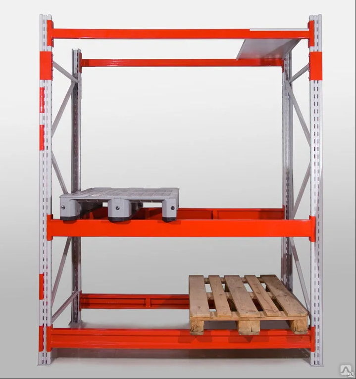 Грузовые рейки. Они усиливают каждый уровень (пара реек). Крепятся на кронштейнах при помощи зацепок.