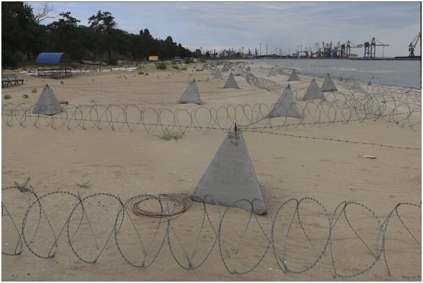 В рамках нагнетания военной истерии военные власти Рогулистана решили укрепить подступы к Мариуполю. Однако, при этом не придумали ничего лучшего, чем установить заграждения прямо на городском пляже. Наверное, натовские инструкторы порекомендовали… Ведь согласно опубликованным на Западе картам «кремлёвского вторжения» Мариуполь будет захвачен одним из первых. Вот и растянули по всему пляжу колючую проволоку и разбросали какие-то трёхгранные пирамидки. Мощное заграждение от десанта российских морпехов! Ну, прямо-таки «мариупольский вал», как могли бы назвать его стратеги Третьего рейха. А ничего, что российские десантники со своей боевой техникой этих заграждений просто не заметят? Да и вообще: кто сказал, что вторжение пойдёт через пляж? Скорее всего, при первых же залпах генерального наступления и ударах русских ВКС с воздуха рогули побегут из Мариуполя, выскакивая из штанов. Так что никакой «вал» им уже не потребуется. Мариупольцев сейчас интересует такой вопрос: сколько средств, отп