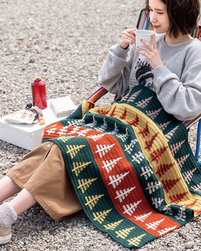 Симпатичный плед с елочками крючком в технике жаккарда из японского журнала