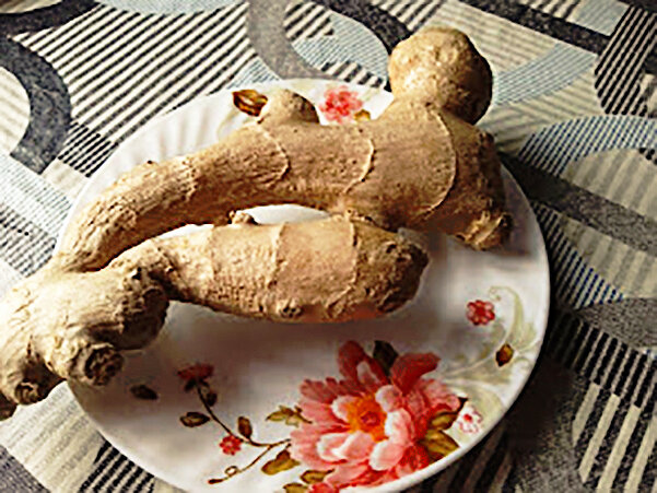С возрастом все чаще готовлю не по рецептам, а по наитию, то есть из того, что есть под рукой и сочетания продуктов в моих блюдах могут быть самые неожиданные. Могу, например, сделать салат из груздей, картошки и рыбной консервы. Почему бы такому сочетанию не быть?! Вся страна мешает в одном салате селедку, картошку, свеклу? яйца? – и находит это очень вкусным! Вот и в воскресенье у меня был салат-импровизация. Смотрела кулинарную передачу с Юлией Высоцкой, увидела продукт, который случайно оказался у меня в наличии, – корень имбиря, и вдохновилась на приготовление салата. Скажу честно, корень имбиря на моей кухне редкий гость. В нашем сельском магазине в продаже далеко не всегда есть, а если и бывает, то какого-то неприглядного вида, полувяленый. В этот раз увидела свежий, красивый имбирь, и, конечно, прикупила. К слову сказать, имбирь значительно подешевел. Прошлой зимой стоил за тысячу рублей килограмм, а сейчас 380 руб/кг – мелочь, но приятно) Высоцкая готовила салат из грудки инде