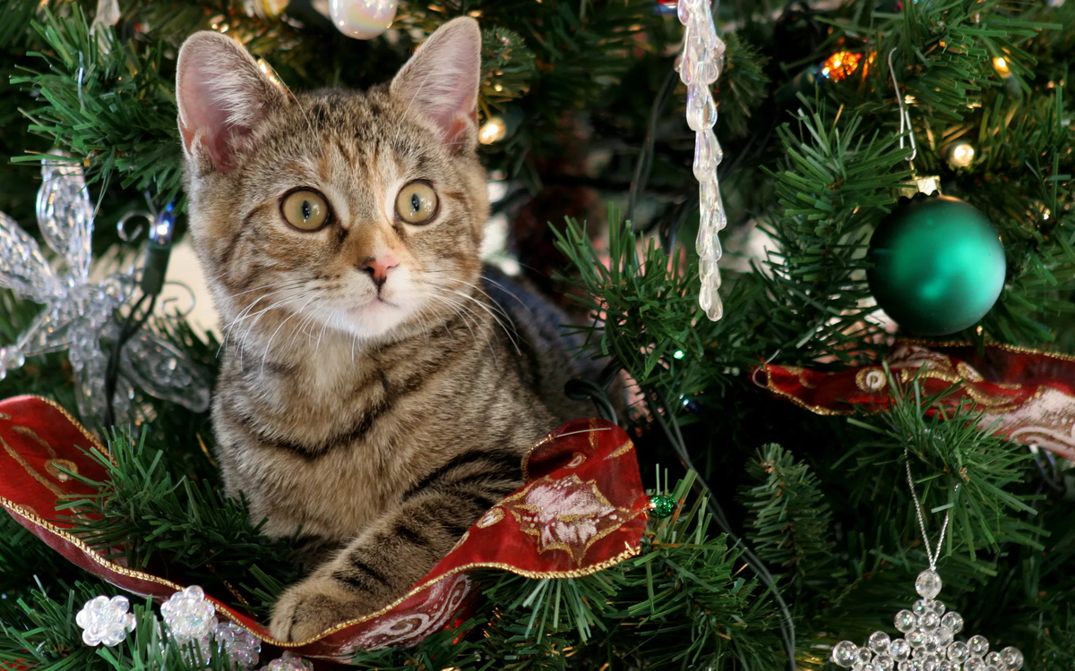 Очень сложно представить встречу Нового года без нарядной елки. Но если в доме есть кот или кошка, вы точно понимаете, что без внимания елочка не останется. Кошки просто магически тянутся к праздничной елке. Им нравятся грызть ветки и провода гирлянд, покорять вершину, играть с блестящей мишурой, бренчать с красивыми игрушками и бить их, частенько на пол валят ёлку целиком. Может это ревность? И конкуренты им просто не нужны. Специалисты говорят, что ёлка это просто большая игрушка для кошек. Она большая, нарядная да еще и мигает разными огоньками. Ведь они так любят ловить разные огоньки, играть с махалочками, а прыгать вообще заложено природой. Хозяину заурядно придется постараться, чтобы защитить елку от питомца и наоборот. Ведь если кот перегрызет гирлянду, когда она будет включена, то может навредить себе. Поэтому лучше заранее купить специальную защиту для провода. А вот с игрушками можно схитрить. Берите на вооружение. Кошки просто обожают бренчащие игрушки. Возьмите несколько