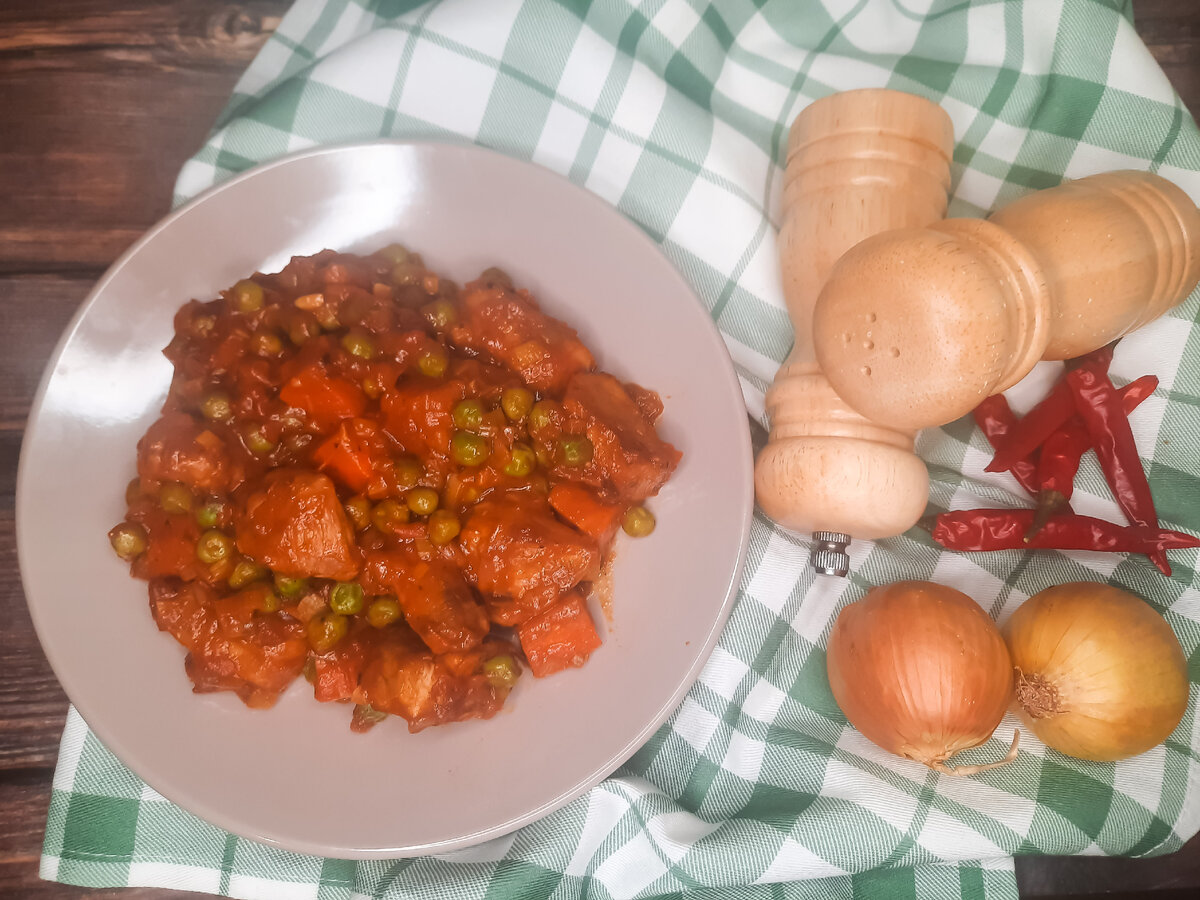Свинина с овощами в белом вине. Простой ужин в европейском стиле