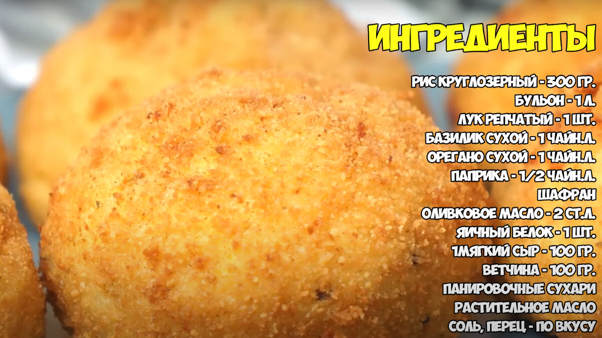 Привет. Очень многие из нас обожают итальянскую кухню. Одно из самых популярных уличных закусок на острове Сицилия - аранчини. Обжаренные рисовые шарики с различной начинкой. Сегодня мы приготовим хрустящие аранчини из риса, сыра и ветчины. Начнем приготовление. В разогретый сотейник наливаем оливковое масло. Затем мелко нарезаем кубиками небольшую луковицу. Сейчас мы готовим основу для нашей необычной закуски по-сицилийский - ароматный рис. Высыпаем лук в сотейник и обжариваем его на среднем огне до золотистого цвета. В сотейник к обжаренному луку добавляем 1 литр бульона. Если бульона нет, приготовьте на воде. Всыпаем подготовленный рис. В Италии часто делаю аранчини из оставшегося с вечерней трапезы ризотто. Настала очередь специй. Мы заранее приготовили сухой базилик, сухой орегано, паприку и шафран. Традиционный рецепт блюда достался итальянцам от арабов. В начинку входили такие продукты, как мясо, сыр и зеленый горошек, обязательно шафран. Солим и перчим, тщательно перемешиваем.