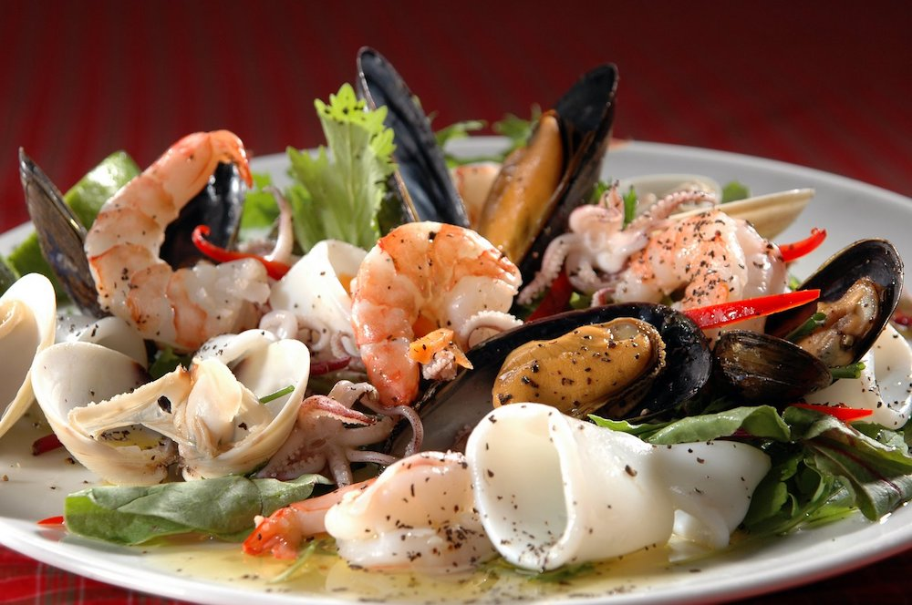 Блюда с морепродуктами К морепродуктам относятся все жители моря, которые не входят в семейство рыб, это креветка, краб, осьминог, мидии, морской гребешок, много видов ракообразных и раки. Большое преимущество данных продуктов в том, что кроме огромной пищевой ценности они очень быстро готовятся, что очень удобно в условиях ограниченного времени. Все морепродукты не требуют длительного приготовления, даже крупные осьминоги готовятся очень быстро. Кальмары следует отваривать несколько минут в кипящей воде, если время кипения будет долгим, мясо станет жестким и невкусным, креветки так же не требуют долгой тепловой обработки. Продукт моря можно запекать, отваривать, тушить, жарить и мариновать, рецептов очень много. Многие продукты продаются уже в отваренном виде (креветки), маринованные (мидии) и для употребления в пищу их можно сочетать в салатах, подливах и прочих блюдах. Креветки с лапшой Отличное блюдо - лапшу следует отварить, креветки запечь с лапшой, полив кокосовым молоком, добав