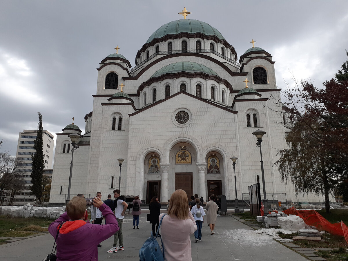 Первая остановка - храм Святого Саввы. Это храм Сербской православной церкви, построен на месте сожжения мощей Святого Саввы турками в 1594 году. Строительство началось в 1935 году, отделка храма еще не закончена. Храм похож на собор Святой Софии в Стамбуле. Заходим. Внутри очень красиво. Продолжаются отделочные работы. По лестнице спускаемся в нижнюю церковь, в крипту храма. Это сводчатое помещение, предназначенное для погребения. Идем на выход. Строительные работы продолжаются. Цветут розы. Едем дальше. Пошел дождь, увы... Посмотрели город из окна автобуса. Церковь Александра Невского. Здание парламента Сербии. Почта. Приехали в Белградскую крепость. Выходим, несмотря на дождь :) Продолжение следует... Начало: День 1, 4 ноября 2021 года Часть 1. Перелет. Отель "Mark"