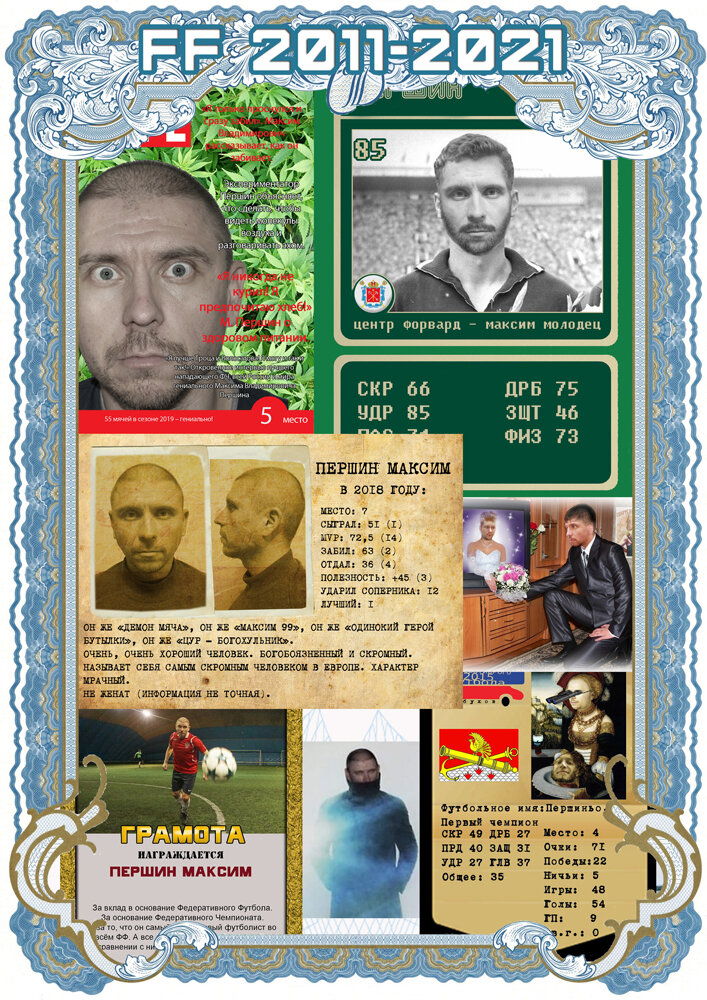 Долгиа труда и силы утрачены на сии наградные листы, которые я смастерил к десятилетнему юбилею Федеративного футбола. В распечатанном виде - это адресная папка диплом с двумя листами. Представляю вам листы на всех 19 футболистов.