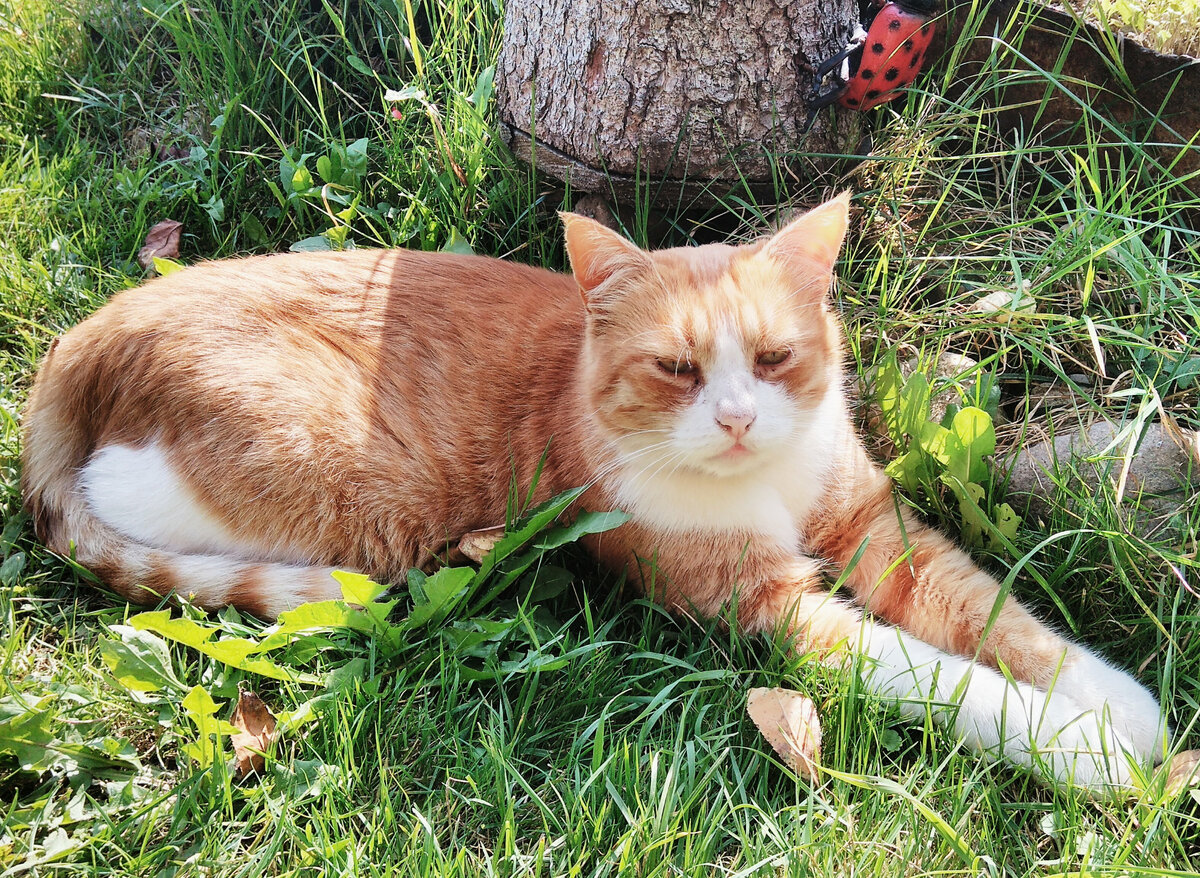 В то утро, выйдя из домика, Ирма увидела на крыльце рыжего кота. Взрослого и большого. С белыми лапками и белым галстуком на шее. Кот смотрел на неё. «Киса! Кис-кис!»- позвала Ирма и протянула руку, чтобы погладить его. Но кот, недоверчиво покосившись, повернулся и побежал прочь.