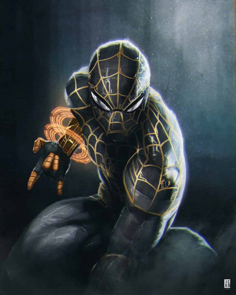 И художник Джексон Касперс решил посвятить превосходный фан-арт Человеку-пауку в чёрном костюме.