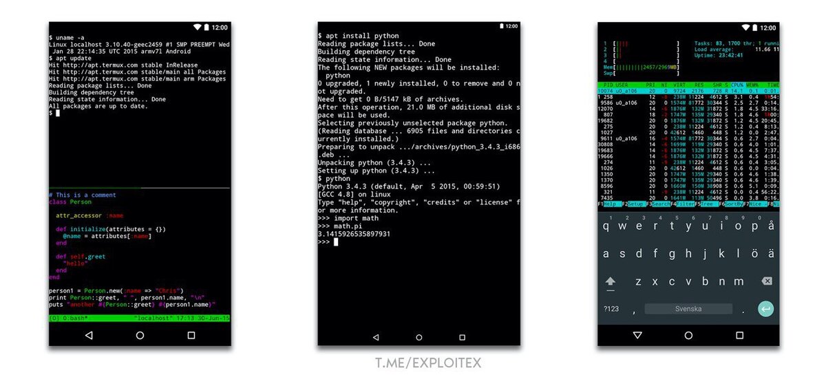 Если у вас нет возможности носить с собой ноутбук с Kali Linux, можно восспользоваться Termux. Это эмулятор терминала Linux, несомненным плюсом которого является то, что многое можно делать без root'а, благодаря чему навредить файловой системе Android практически нереально. Возможности терминала ограничиваются только вами. Вы можете устанавливать различные скрипты и программы с github и запускать их в Termux. На мой взгляд, это лучший эмулятор на сегодняшний день. Так же имеет дополнительные плагины, которые также доступны в Google Play. Установить Termux можно из Google Play