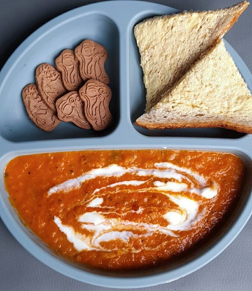 》 Добавьте молоко, затем взбейте суп до желаемой консистенции с помощью ручного блендера.