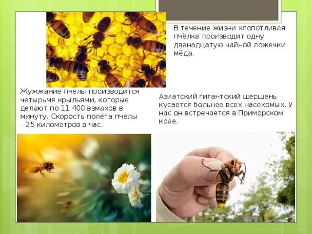 В течение жизни хлопотливая пчёлка производит одну двенадцатую чайной ложечки мёда