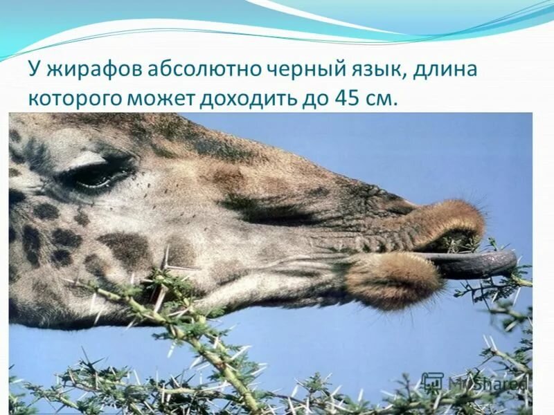 У жирафов абсолютно черный язык, длина которого может доходить до см