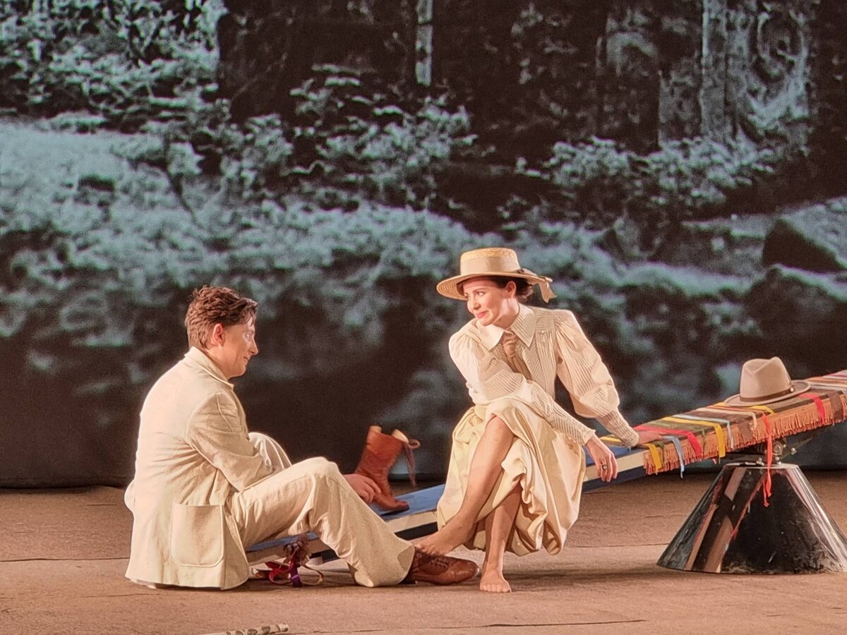 Мы попали на премьеру спектакля "Сцены из деревенской жизни" в театре под руководством Н. Михалкова. Как указано на сайте: Девять дуэтов о любви по пьесе А.П. Чехова «Дядя Ваня». Можно сказать , что это свободная интерпретация пьесы с сохранением только любовной линии сюжета. Спектакль, на мой взгляд, чисто женский. Он весь состоит из взглядов, недомолвок, неловких движений и тайных прикосновений. Огромную роль играет хореография. В данном случае она очень интересная и уместная. Особое наслаждение я получила от итальянских серенад, которые красиво и тонко вплетены в постановку. Стоит отметить, что пьеса в большей степени сохранила классические черты. Продуманные костюмы, интерактивный задний фон, на котором сменяют друг друга фотографии усадеб и портреты 19 века, но при этом чувствуется какая-то "обломовщина". Все очень неспешно, неторопливо, словно парящий летний зной давит на все происходящее. Единственное, что мне не очень понравилось, так это "странность" Сони, будто она немного