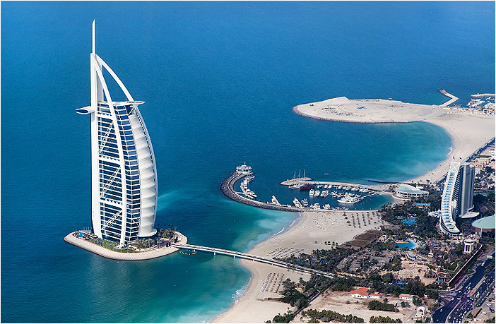 Роскошный отель в Дубае, самом крупном городе Объединенных Арабских Эмиратов. Здание стоит в море на расстоянии 280 м