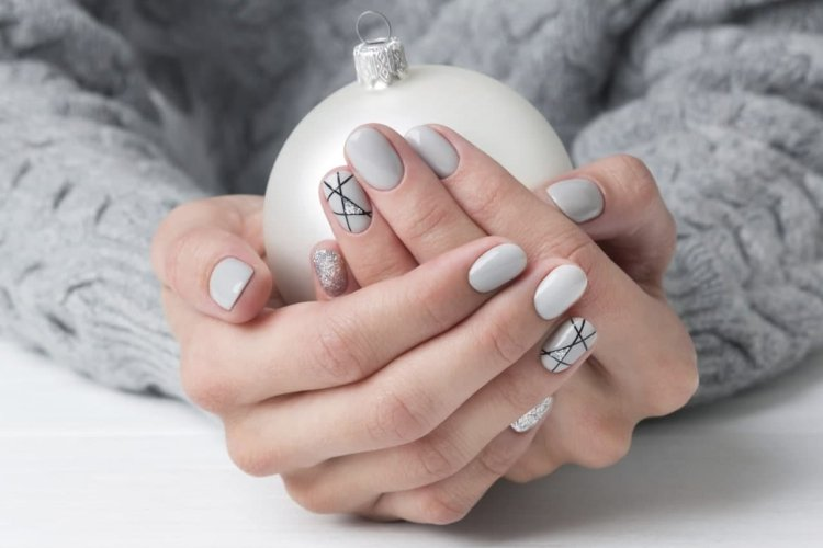 7. Зимний серый маникюр на короткие ногти