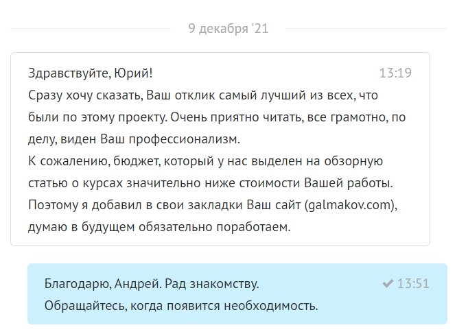 Зачем подавать заявки на проекты, в которых вы, скорее всего не нужны? Рост фрилансера зависит не только от того, сколько проектов мы выполнили или сколько денег заработали. А еще и от того, насколько расширяется диапазон аудитории, которая может у вас заказать работу. Простыми словами → делайте так, чтобы о вас узнали больше людей, которым вы можете пригодиться. Я подаю заявки на многие проекты, даже если не прохожу по бюджету (для многих со мной работать дорого). Но таким образом я показываю себя и своё портфолио. А также даю возможность хорошего результата. Почему это работает? Потому что человек устроен так, что он всегда хочет заплатить меньше, а получить лучший результат из возможных. Но когда человеку невыгодно работать со мной, он находит исполнителя дешевле. Обычно намного дешевле. Тот выполнят заказ, но не настолько хорошо, как хотелось клиенту. И тут к заказчику приходит озарение — нужно было брать дороже, но с нормальным результатом. И тогда приходят ко мне. Но почему