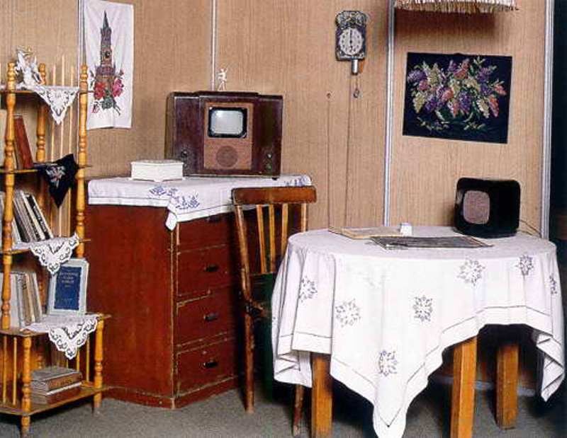 Кроме кровати в комнате стоял небольшой шкаф, круглый стол с двумя круглыми стульями, кресло. В углу стояла этажерка, наверху которой красовался бюстик Ленина.