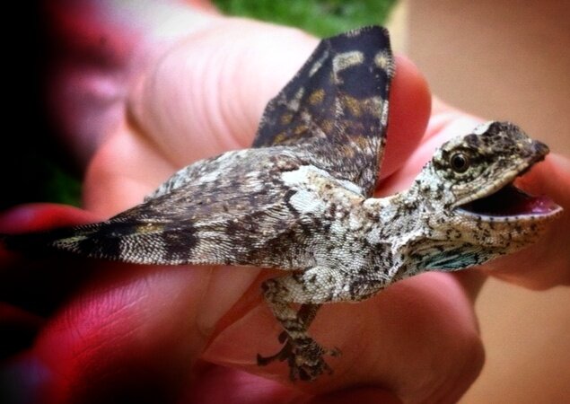 Смотря на эту удивительную рептилию невольно начинаешь верить в правдивость легенд и сказок о драконах. Ящерица, имеет вполне обоснованное название - Летучий дракон.