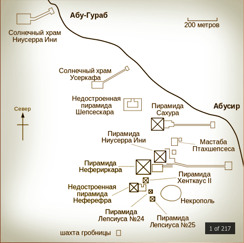 Из общей схемы выпадает лишь пирамида Усеркафа в Саккаре. Во-первых “больший базальтовый пол” рядом с ней находится с южной стороны, в то время как у пирамид Хеопса, Сахура и Ниусерра – с восточной.