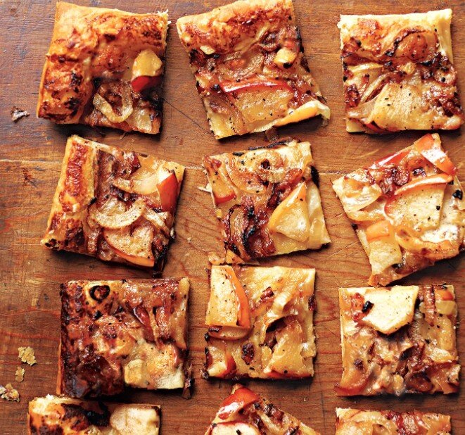 Эти кусочки слоеного теста сочетают терпкие яблоки с карамелизованным луком для уникального осеннего аромата, который обязательно понравится. Испеките несколько пирожков для закуски на званый ужин или закуски в книжном клубе - или сделайте один для легкого ужина, подаваемого вместе с капустой или идеально подходящим зеленым салатом. Вы начнете с приготовления нарезанного лука на плите, затем добавите нарезанные яблоки и немного соли и перца. Этот зрелый подросток намазывается на слоеное тесто и крем-фреш, которые все отправляются в духовку примерно на полчаса. Используйте нож для пиццы, чтобы разрезать пирог на мелкие кусочки и подавать. Ингредиенты Контрольный список ингредиентов 2 столовые ложки оливкового масла 2 средних луковицы, нарезанные ломтиками 2 красных яблока (например, Брейберн или Гала), нарезанные небольшими кусочками , кошерная соль и черный перец 2 листа замороженного слоеного теста (из упаковки весом 17,3 унции), размороженного ½ стакана сливочного крема или сметаны