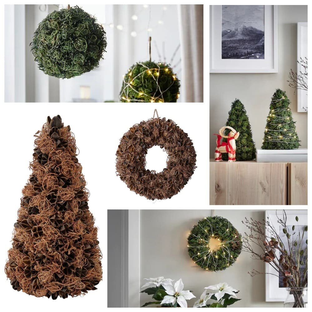 - Отходы сельскохозяйственного производства Индии превратились в самые оригинальные новогодние украшения для дома ИКЕА за всю историю компании. Подвесные шары, венки и настольные украшения из сухих растений выполнены в двух гаммах: коричневой и зеленой (фото 1). Они красиво смотрятся сами по себе, хотя и можно добавить их красок: повесить маленькие игрушки, вплести бусы или нить гирлянды. Новогодние украшения ИКЕА 2022 выполнены вручную, уход за ними требуется деликатный – можно лишь смахнуть щеткой пыль.