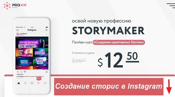Пройди курс «Создание креативных Stories»Стоимость курса:$99