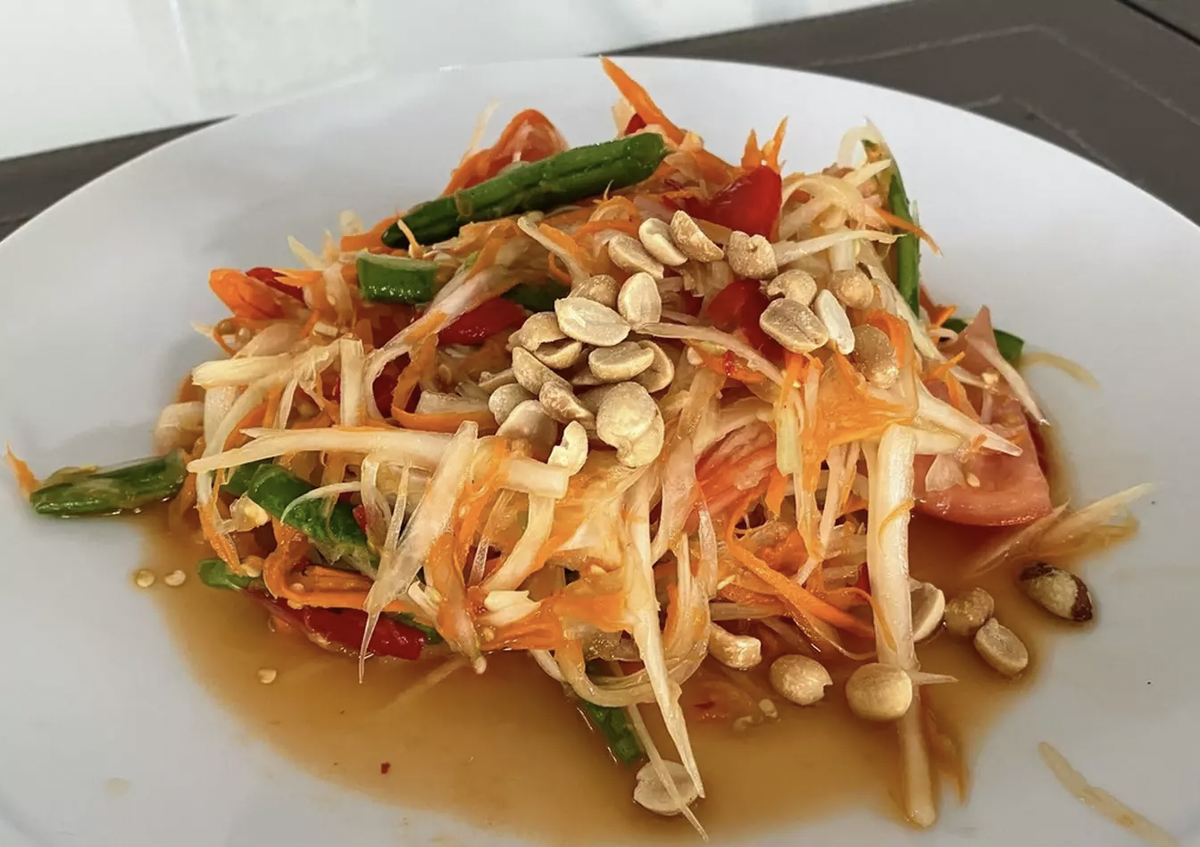 Если вы хотите найти Сом Там в Таиланде, все, что вам нужно сделать, это прислушаться к звуку ударов деревянных пестиков, ритмично ударяющих по чашам, наполненным ароматными ингредиентами, когда вы проходите мимо уличных торговцев. Этот салат из зеленой папайи стал одним из фирменных блюд Таиланда во всем мире и является неотъемлемым блюдом лаосской кухни северо-восточного региона. Пикантный, хрустящий, сладкий и немного острый Som Tam сочетает в себе полоски зеленой папайи со свежим красным перцем чили, гвоздикой, чесноком, помидорами, лаймом, сушеными креветками, арахисом и помидорами. Ингредиенты аккуратно растирают вместе - но не измельчают - деревянным пестиком, чтобы выявить отдельные ароматы и объединить их в одно великолепное блюдо. Сом Там, поданный с липким рисом и посыпанный арахисом, - это волшебная тайская еда, которая перенесет вас в глухие леса Лаоса с его ароматами и вкусами.